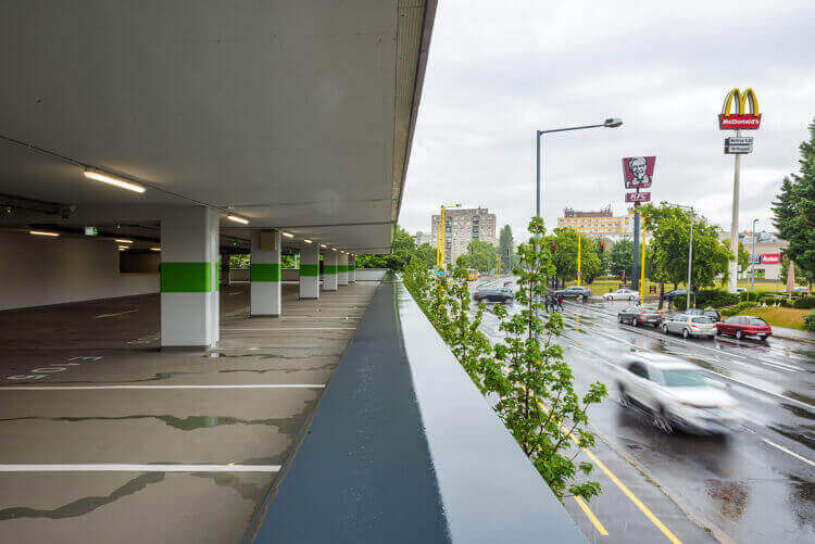 A parkolólemez minden helyisége, valamint a fel- és lehajtó rámpák is fűthetőek a téli időben a biztonságos közlekedés érdekében. A szintek műgyanta réteget kaptak, ami nem csak a betont védi, de könnyebben takarítható és kevésbé csúszós felületet biztosít.