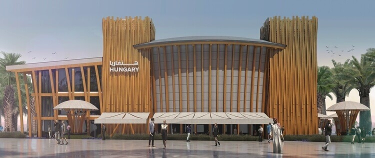 A közel-keleti helyszínen megtartották a Makovecz-iskolához tartozó Csernyus Lőrinc tervei alapján épülő 1927 négyzetméteres épület bokrétaünnepségét. A pavilon, melynek nemrég készült el a szerkezete, egy többszintes, kettős rétegű, faszerkezetű épület, amely egy belső kupolából és az azt körülvevő külső burokból áll.