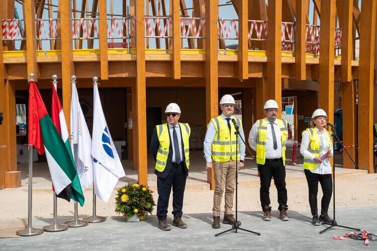 Tóth Andrea, az eseményen való részvételért felelős Expo 2020 ügyvezetője kifejtette: nagy hálával tartoznak a beruházók annak a mintegy 100 embernek a munkájáért, akik az elmúlt hónapokban dolgoztak rajta. Kiemelte Csernus Lőrinc főépítész és csapata munkáját és hasonlóan annak a 16 magyar ácsnak a csapatát, akiknek a kemény munkája lehetővé tette a terv előrehaladását.
