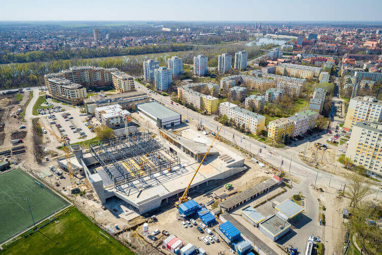 A projekt a tetőszerkezet építésével folytatódik, valamint az épület belsejében a szakipari szerelési munkákat végzik el. Halad a sportkomplexum megközelítését megkönnyítő Etelka sori körforgalom kialakítása is. A közműkiváltások mellett a Tápai utcai ágán is dolgozik a kivitelező. A közlekedőknek továbbra is lokális forgalomterelésekre kell számítaniuk.