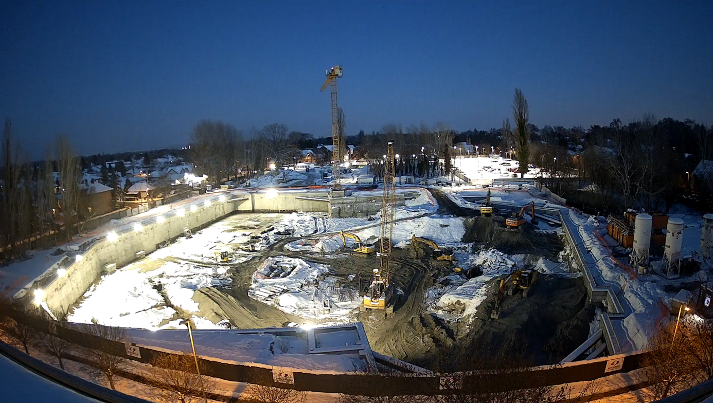 A nagytömegű földmunka gyakorlatilag a végéhez közeledik: eddig mintegy 60 000 m³ föld került elszállításra, amellyel a földkiemelés az utolsó ütemébe lépett. A munkagödör víztelenítése tovább erősödött azzal, hogy a 3 darab végleges víztelenítési kút is elkészült a hozzájuk tartozó szivárgórendszerrel, biztosítva a tartósan száraz munkakörnyezetet a további kivitelezési fázisokhoz.
