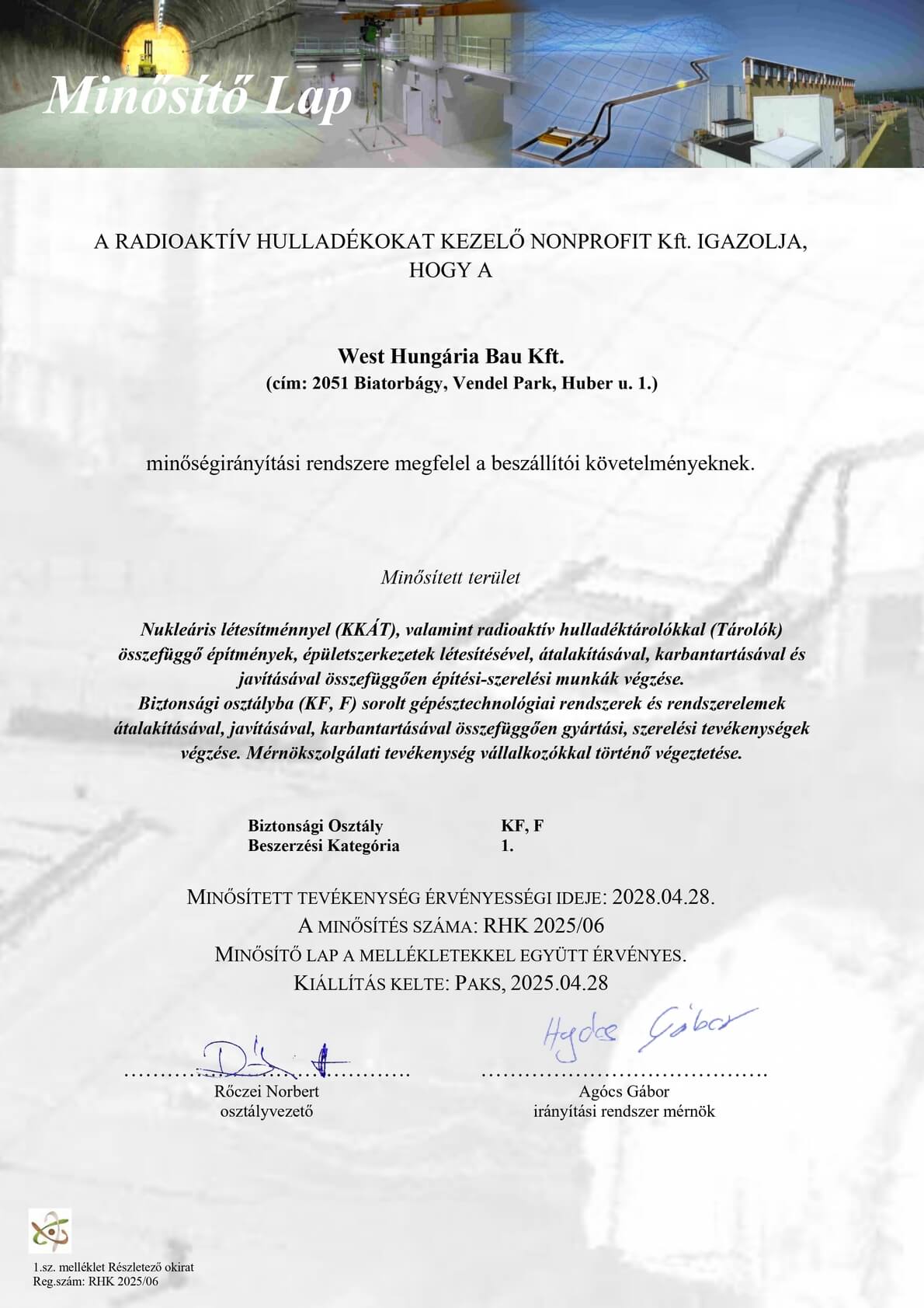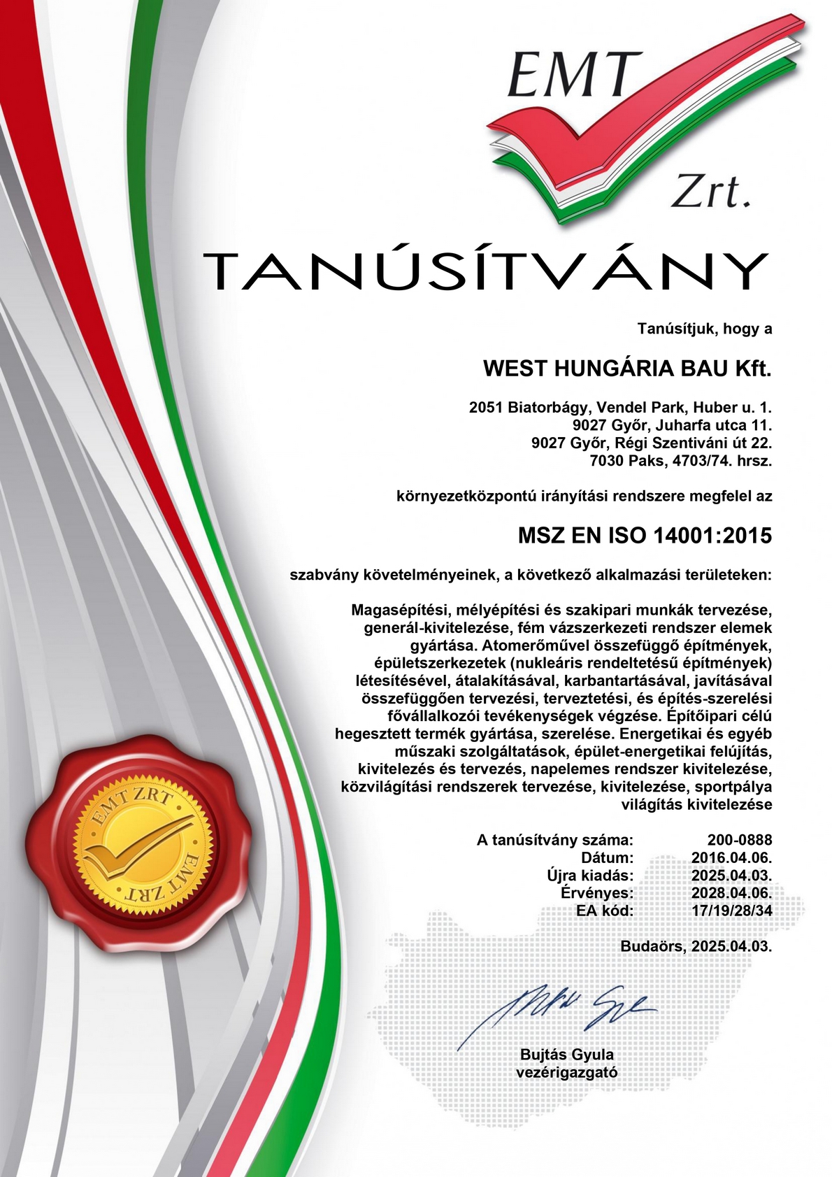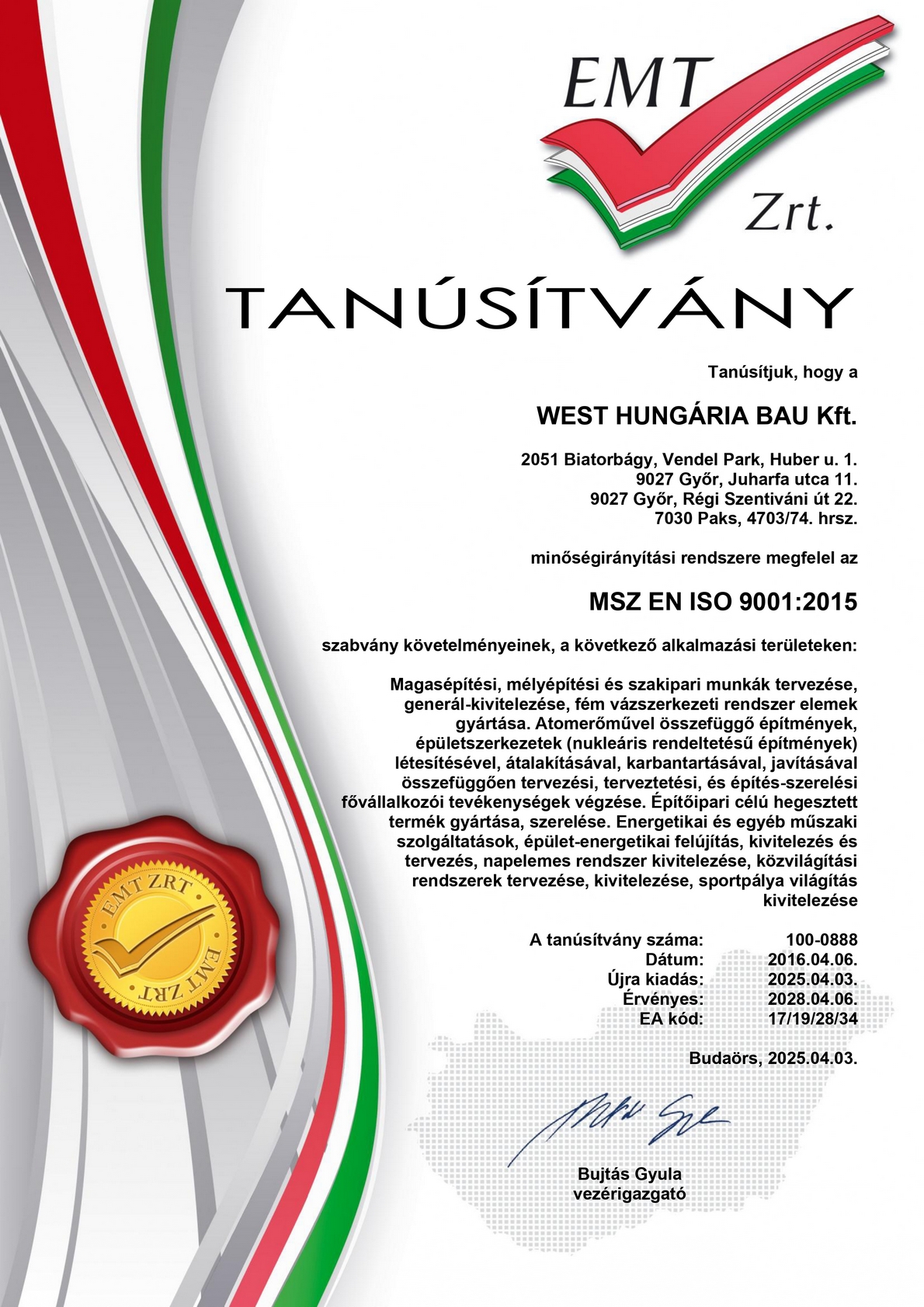 A WHB-nál a minőség nem csupán cél, hanem alapelv. Minden tevékenységünket szigorúan ellenőrzött, tanúsított rendszerek támogatják, amelyek garantálják a megbízhatóságot, biztonságot és fenntarthatóságot.